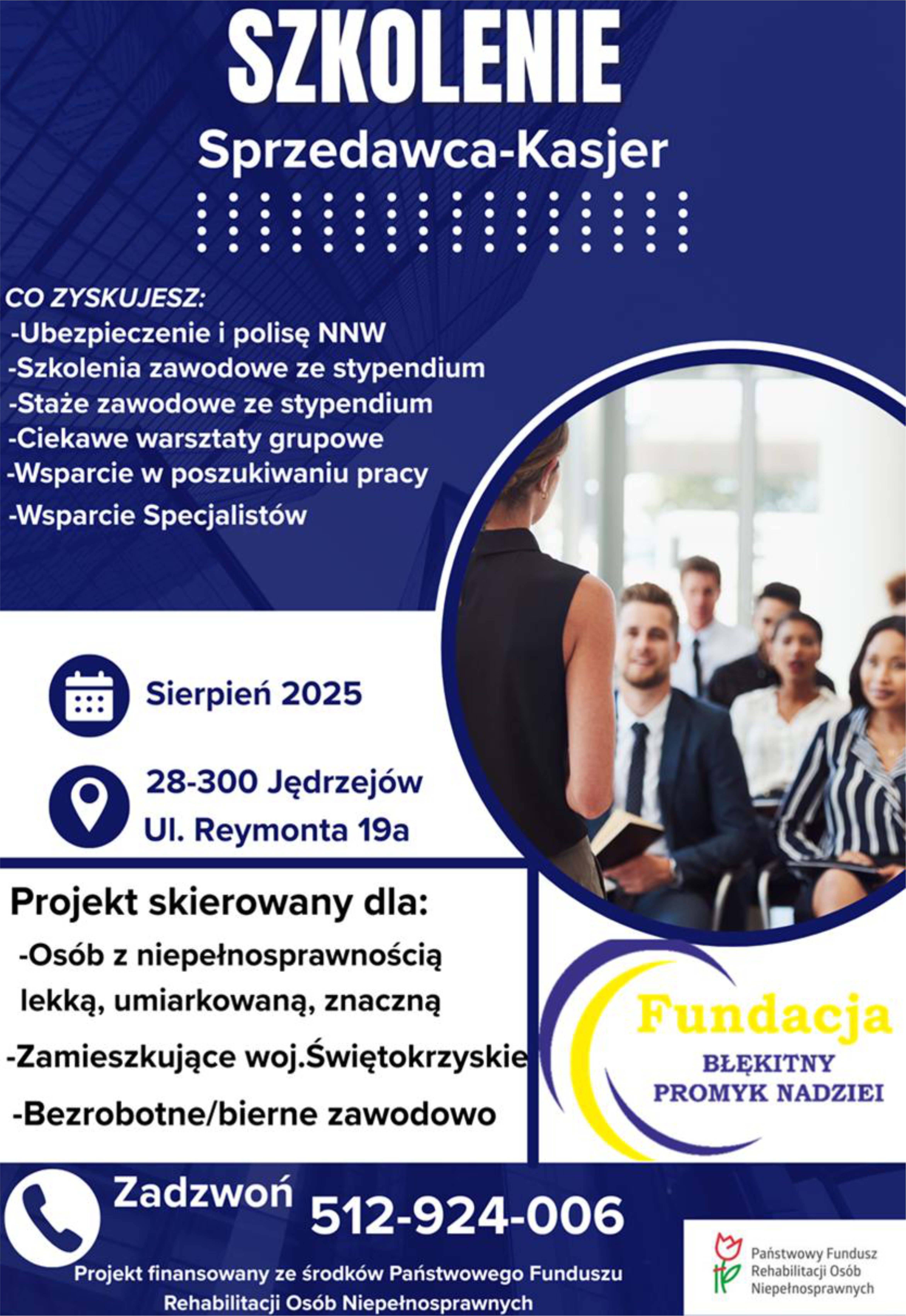 Więcej informacji uzyskają Państwo w siedzibie naszego biura Fundacja Błękitny Promyk Nadziei ul. Reymonta 19A, 28-300 Jędrzejów oraz pod numerem telefonu 41 386 65